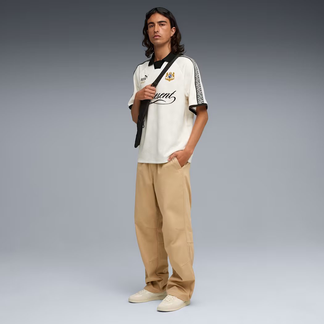 PUMA reunites with Represent for a collection that blends football heritage with contemporary luxury. Rooted in Represent’s British streetwear identity and PUMA’s sporting legacy, the range delivers refined pieces with considered details, alongside two archive footwear icons: the King Indoor and the Super Team.