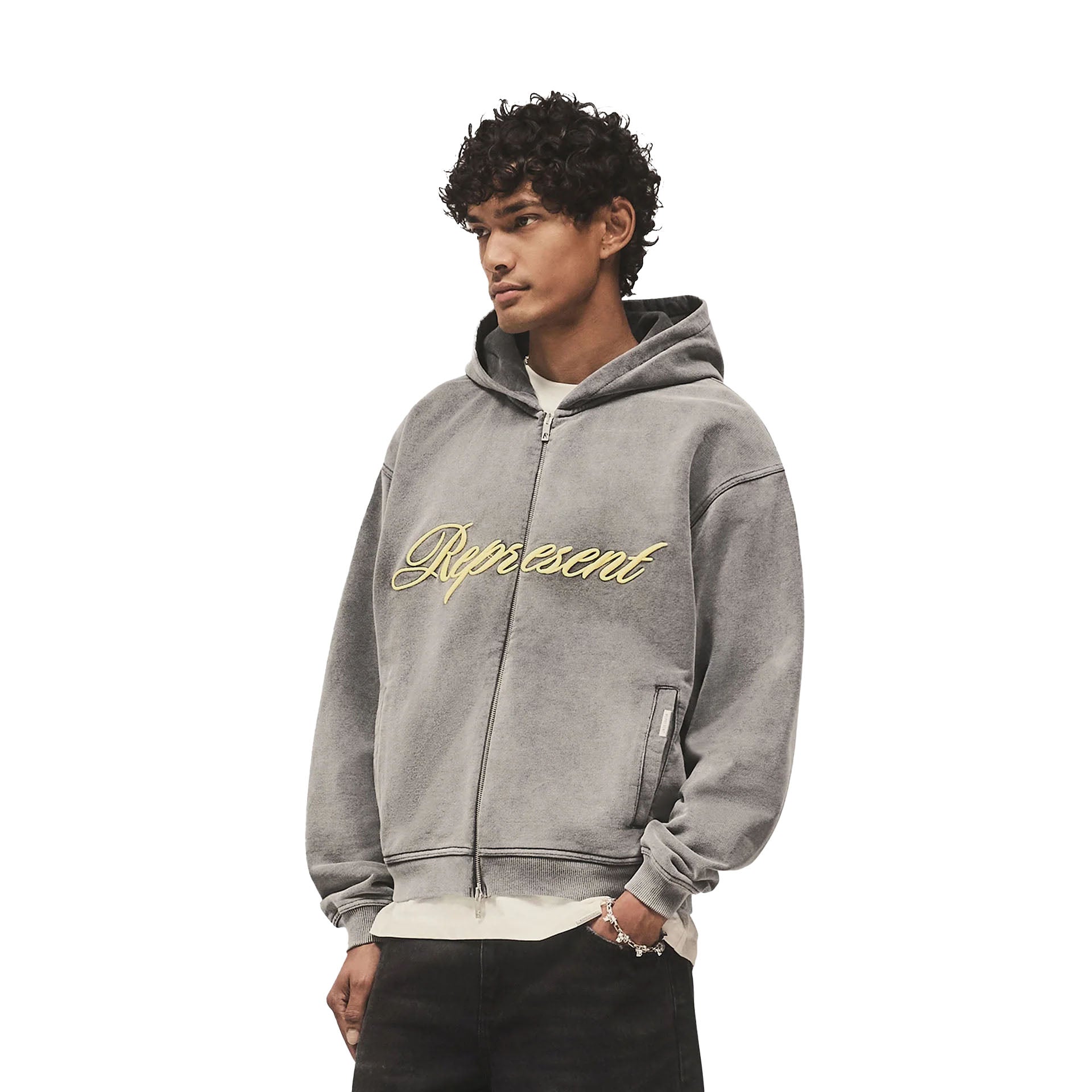 REPRESENT Script Logo Zip Hoodie Vintage Grey